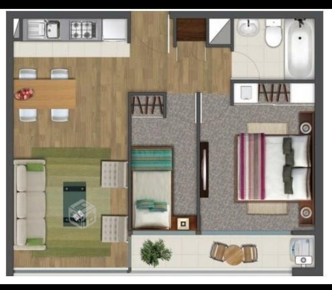 Departamento con vista al oriente con 2 dormitorios, un baño, estacionamiento y bodega.